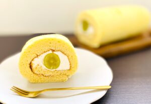 しっとり焼き上げたスポンジに、甘さ控えめのクリームを入れてロールし、食べやすくカットしました。